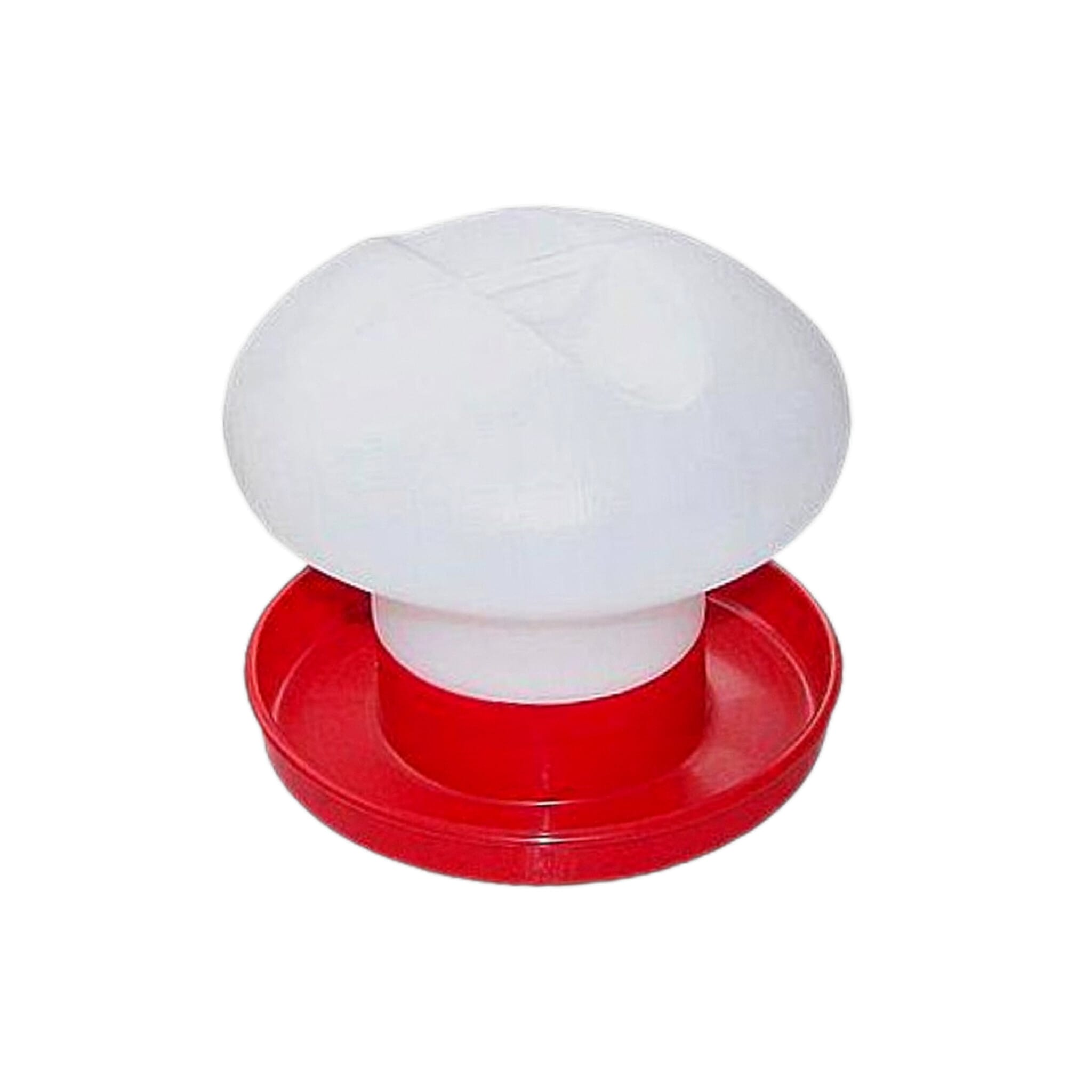 Bebedero para aves de corral, fabricado en plástico alimentario resistente y adaptado para aves de corral, con asa superior para transportarlo fácilmente y colgar.