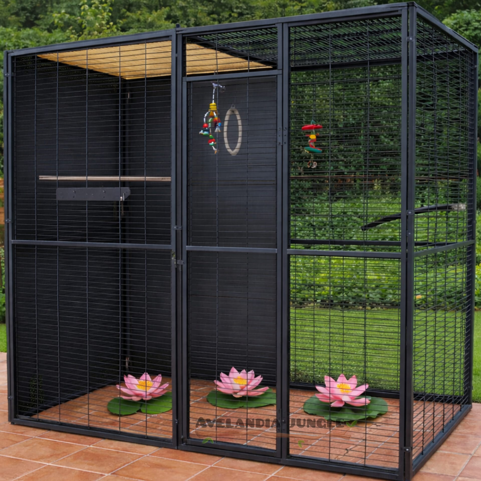 Voladera de jardín para loros y aves rapaces. Un aviario de calidad pensado para aves p/medianas, medianas y grandes: yacos, amazonas, guacamayos, cacatúas, eclectus, jardineros, conures, cotorras, pyrhurras, loris, caiques y todo tamaño similar.